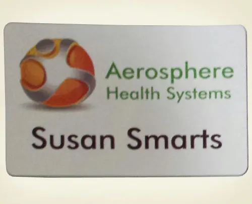 We offer silk screen name badges, plastic name badges, and brass metal name badges. Our silk screen name badges actually feature sublimation printing, which means that your name, logo, or other graphics will last as long as the name badge itself. Our plastic name badges are a more cost-effective option and feature two colors engraved directly onto the plastic. Brass metal name badges are typically seen on members of the military or police force, but can be used by any professional. Our name badges are available in a complete range of colors, and can be attached with either a pinback, magnet, bulldog clip, or military clip. In addition to name badges, we also sell and customize door signs, cubicle sign plates, and desk signs. These are typically 2 inches by 10 inches and made from plastic.